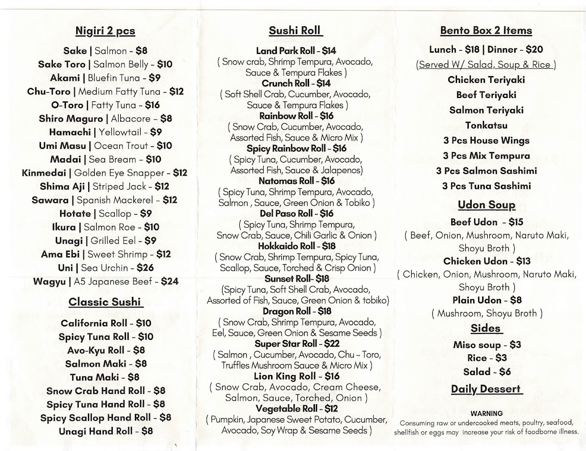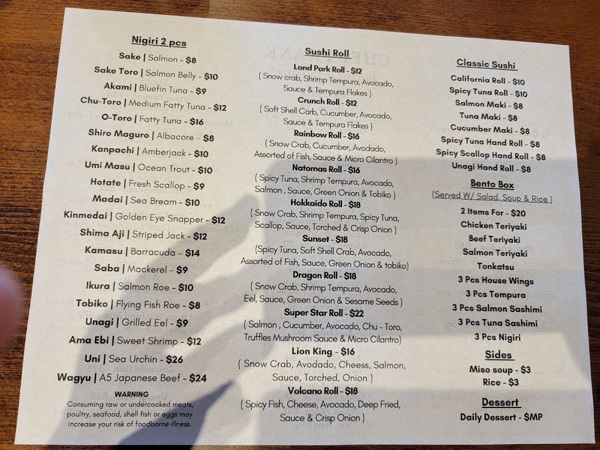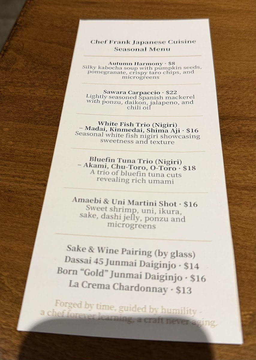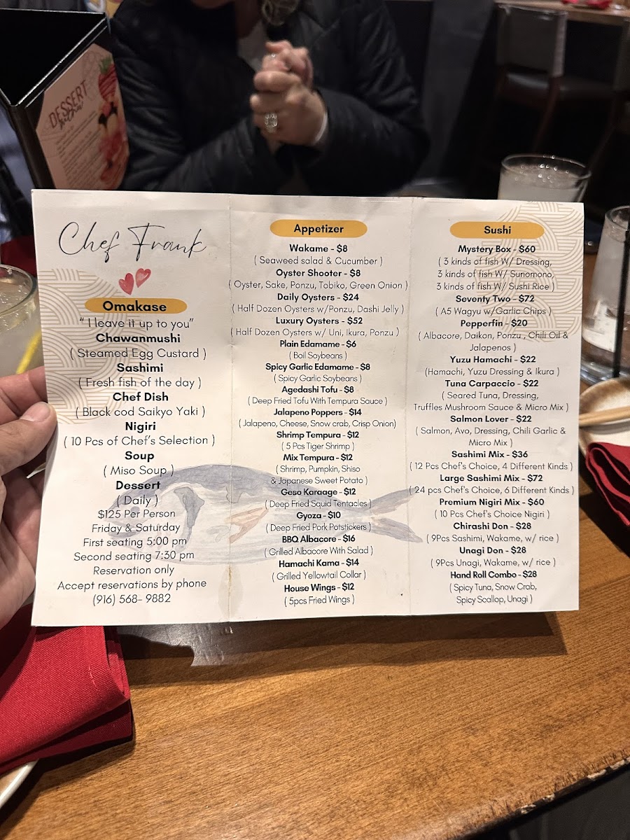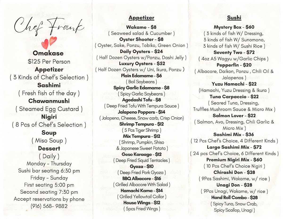 Chef Frank Japanese Cuisine Menu